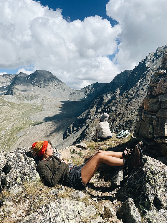 When we reach the top, we sit on our usual bench. The refuge is named after the painter Segantini, who captured the Engadin’s light in his paintings. The first time Anita climbed here, she was only four years old. She was small but determined, and that climb was her first true encounter with the mountains. And now, every time we gaze at this boundless panorama, we know we will return. Because some places belong to the heart, and this is one of them.