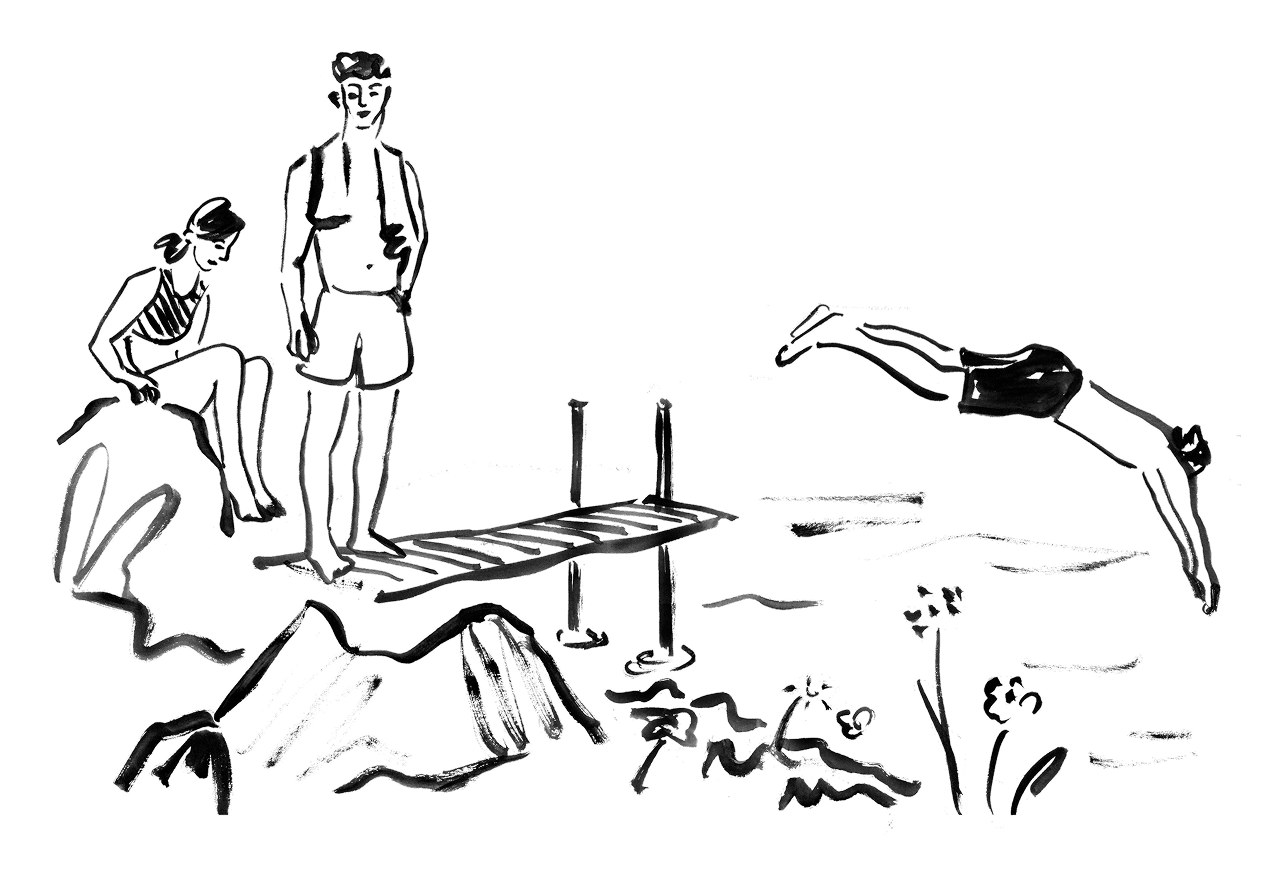 Anita lets out a joyful cry and dives in, followed closely by us. The water is fresh, enveloping. We laugh, splash each other, and surrender to the lightness of a shared game. Then, tired but happy, we lie on the warm grass, watching the clouds drift above us. A moment of perfect harmony, etched in our memories.